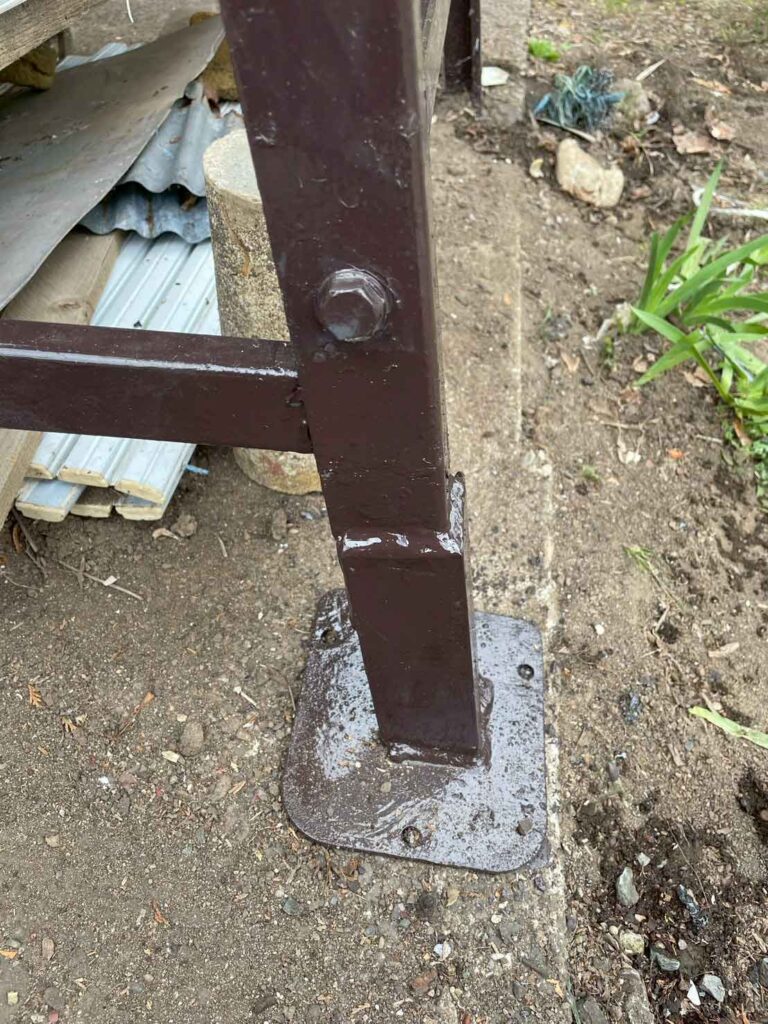腐食によって薄くなり、耐力が低下した脚部鋼材に対し、溶接によって新たな金属を一体化させます。